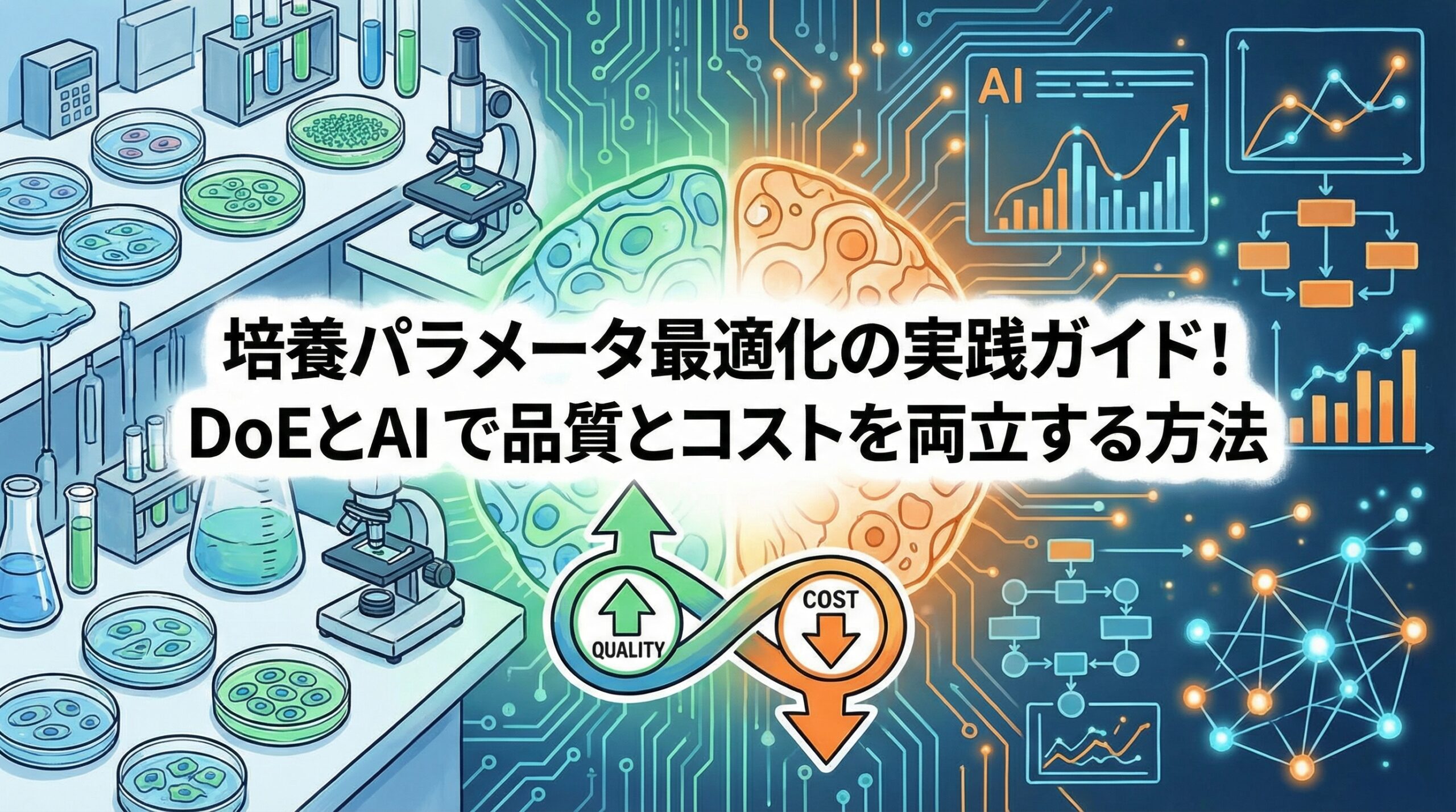 従来の経験や勘に頼った手法では、開発期間の長期化や製造コストの増大を招くだけでなく、スケールアップ時のトラブルにもつながりかねません。そこで重要となるのが、科学的根拠に基づいた「培養パラメータ最適化」です。本記事では、Quality by Design(QbD)の考え方に基づき、実験計画法(DoE)や最新のテクノロジーを活用して、複雑な培養プロセスを効率的に最適化するための手法を詳しく解説します。皆様の研究開発を加速させる一助となれば幸いです。